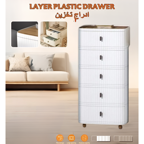 خزانة أدراج بلاستيكية متعددة الطبقات لتخزين الملابس والأغراض الأخرى.