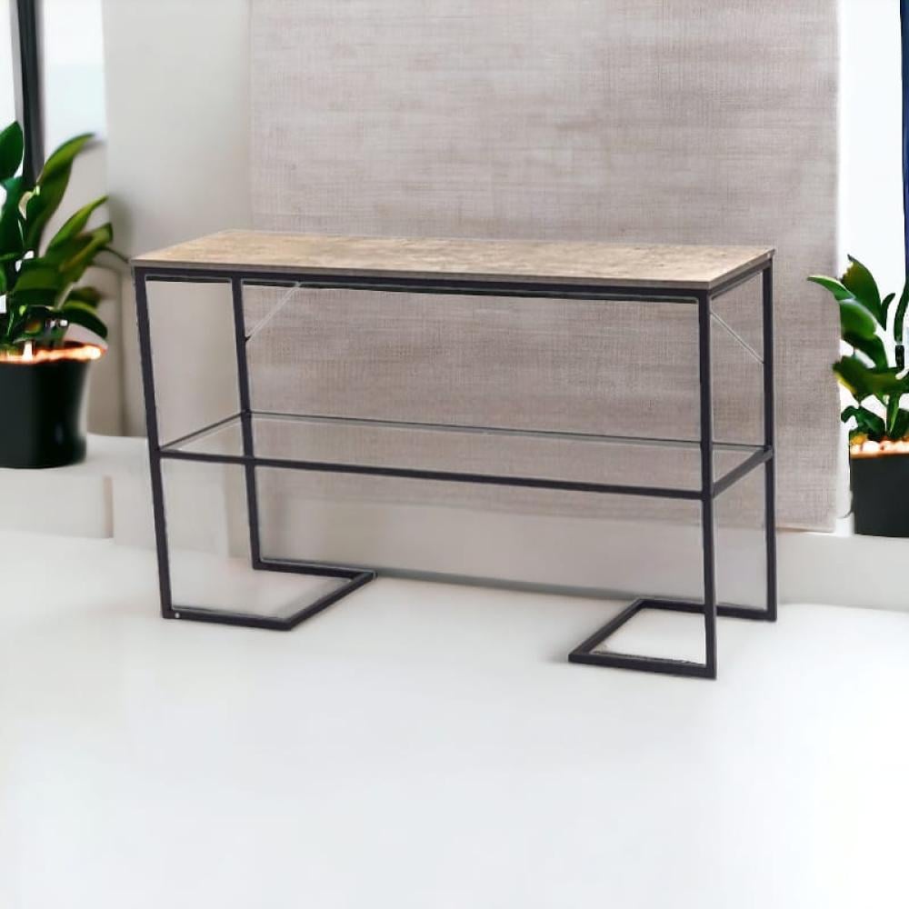 إذا كنت تبحث عن لمسة أنيقة لتعزيز مدخل منزلك، فإن طاولة كونسول خشب بلونها الرمادي مع الرف الزجاجي هي الخيار المثالي. يجمع هذا التصميم العصري بين الأناقة والوظائف، مما يجعله إضافة رائعة لأي مساحة.