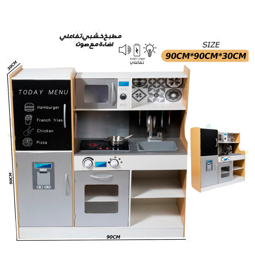 كبيرتم تجهيز مطبخ الاطفال بالعديد من الأجهزة بما في ذلك فرن ميكروويف وفرن (مع أزرار نقر ) وثلاجة وموقد إلكتروني مع الصوت والضوء ومغسلة مع خلاط.