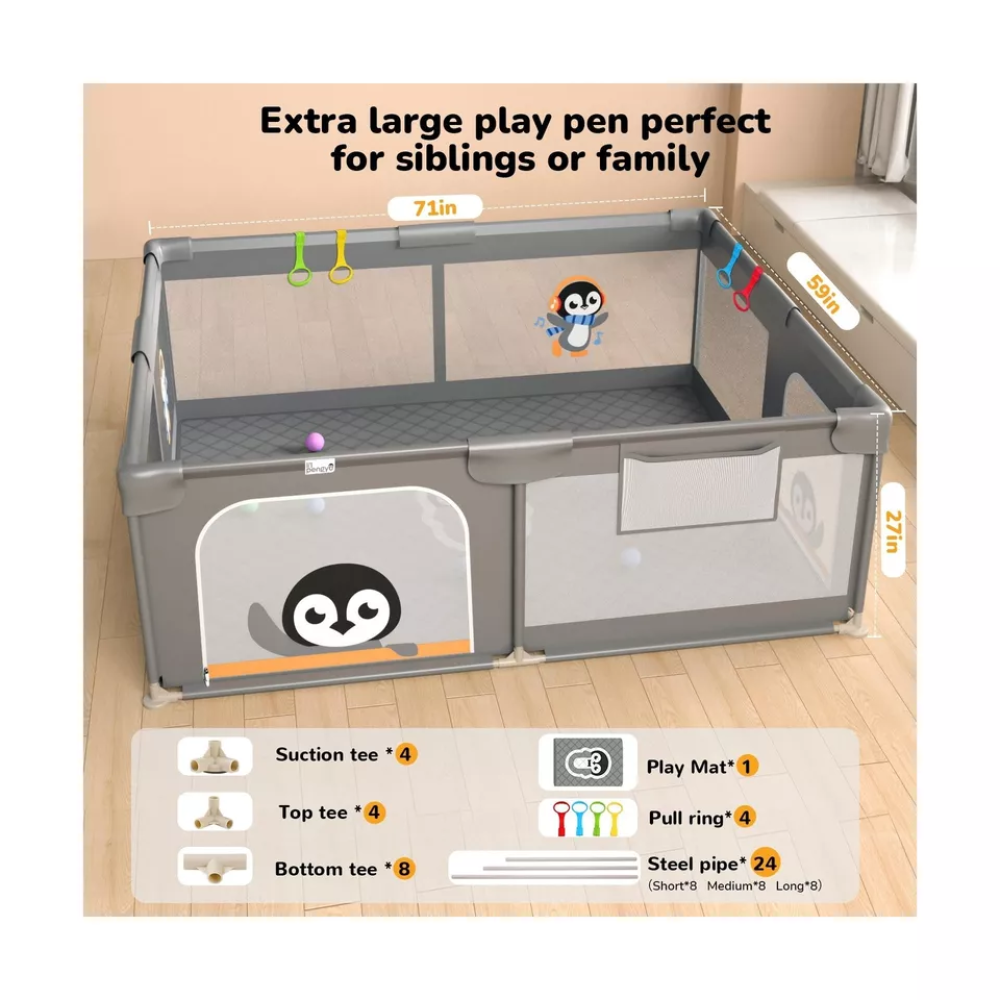 【الأكبر والأفضل】: يوفر قفص لعب الأطفال الكبير جدًا مقاس 71 × 59 انش مساحة كافية للأنشطة الداخلية والخارجية، وهو رائع لمشاركة الوقت الجيد مع عائلتك، ومريح للطفل للمشي والزحف والاستكشاف.